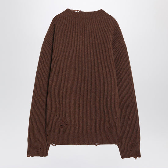 MM6 Maison Margiela Distressed brown wool-blend sweater