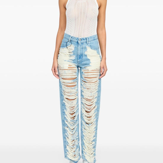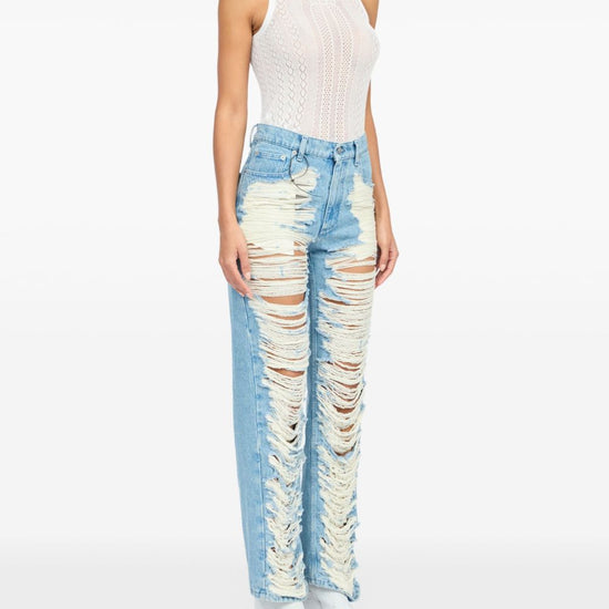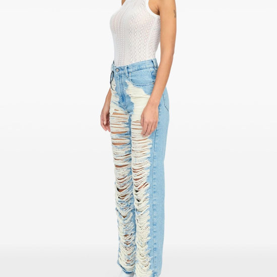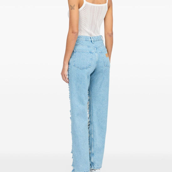 Light blue concealed fly and button fastening classic five pockets belt loops signature numbers motif denim cotton jeans size and fit - this piece fits true to size. we recommend you get your regular size. model is 1,75m / 5ft 8in wearing size 27 (waist cm)