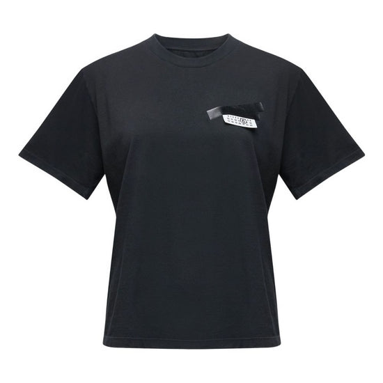 Black short sleeves crew neck cotton logo cotton t-shirt
