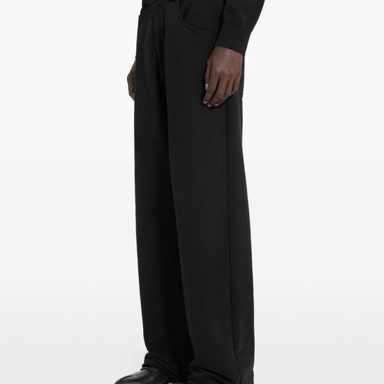 Black concealed fly and button fastening belt loops straight leg straight hem cotton trousers