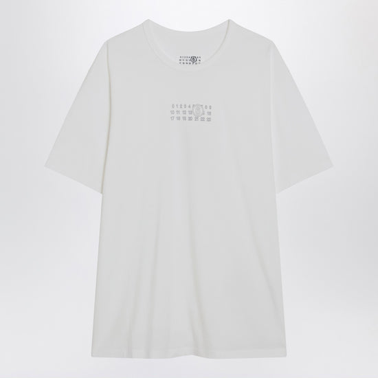 Mm6 maison margiela round-neck t-shirt in white cotton, featuring a contrasting numeric signature print on the front, short sleeves, and a straight hem.