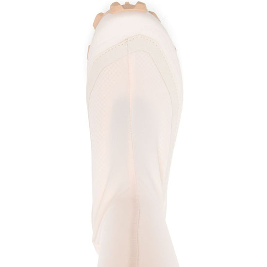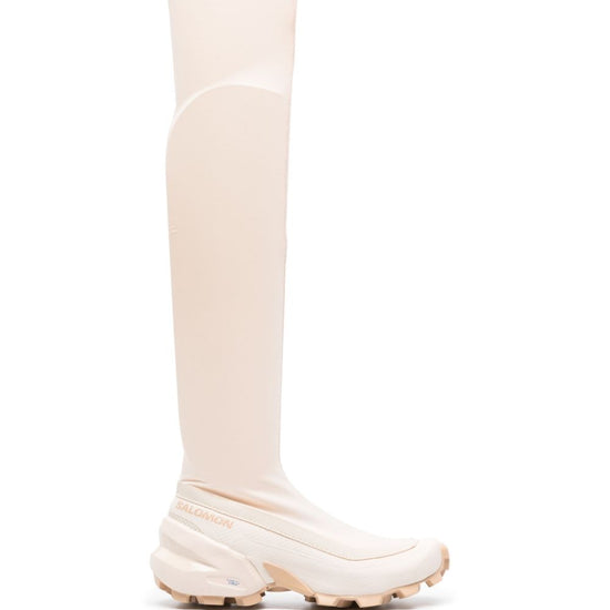 White boot, printing with side logo, design pull on, side closure with short zip, length above the knee, rubber and round pointed sole. over-the-knee boots size and fit - heel 2,4 in / 6 cm; platform 0,8 in / 2 cm