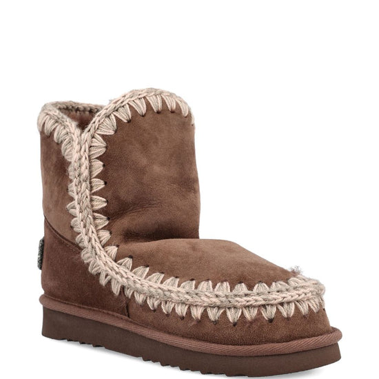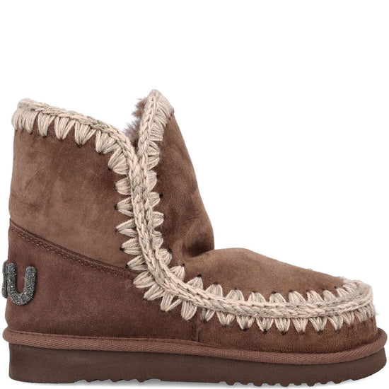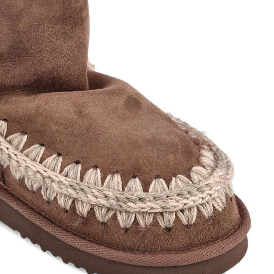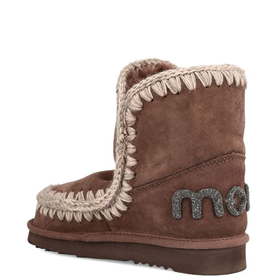 Brown crochet trim logo detail ridged sole round toe pull-on style eskimo 18 glitter logo boots