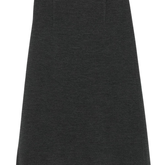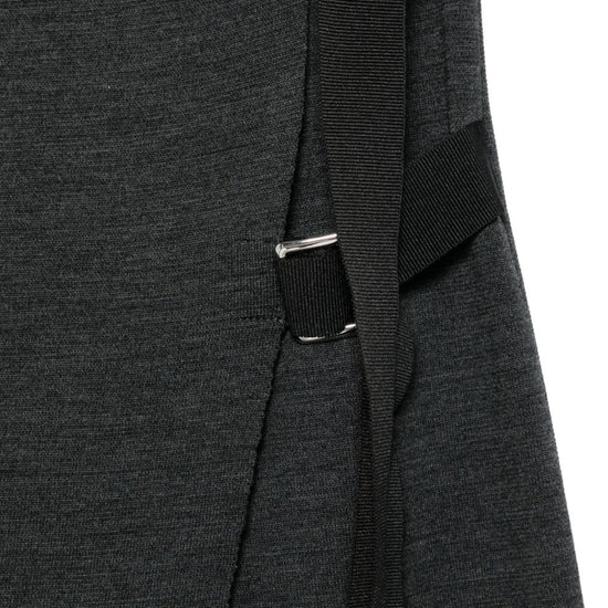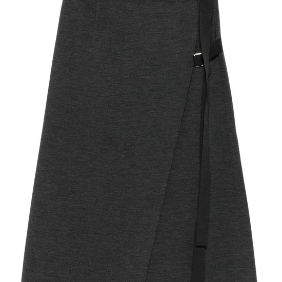 Grey wool wrap design asymmetrical hem buckle fastening wool midi skirt