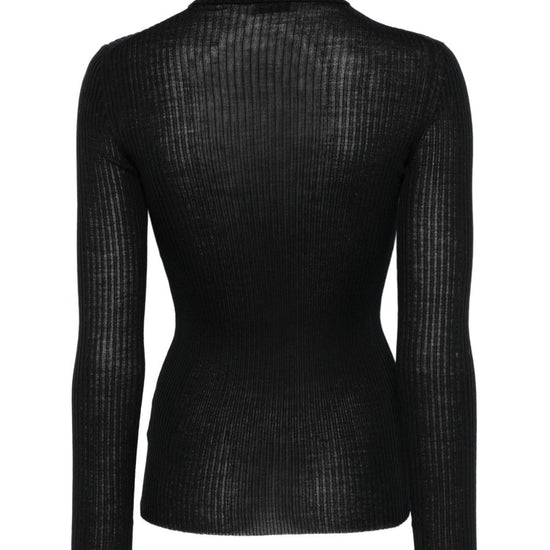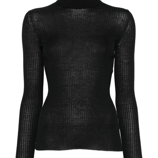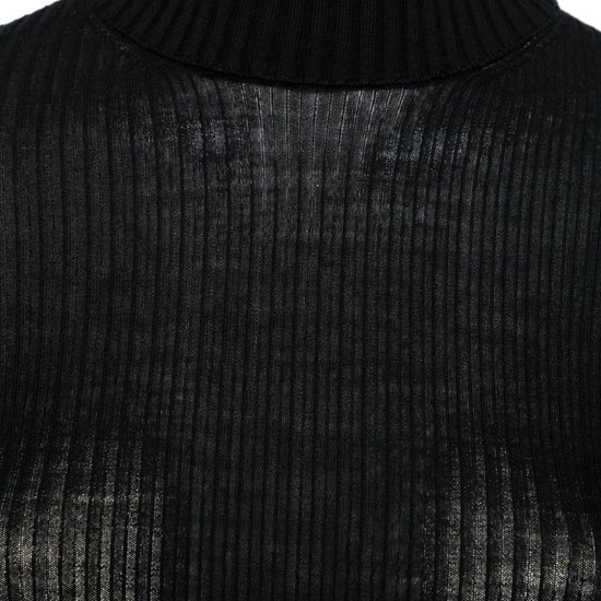 Black ribbed knit long sleeves wool wool turtle-neck sweater