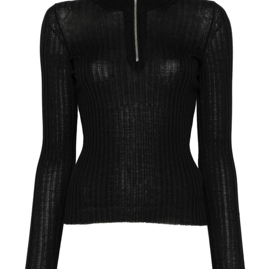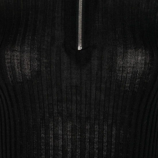 Black ribbed texture zip fastening long sleeves cashmere-silk blend cashmere and silk sweater