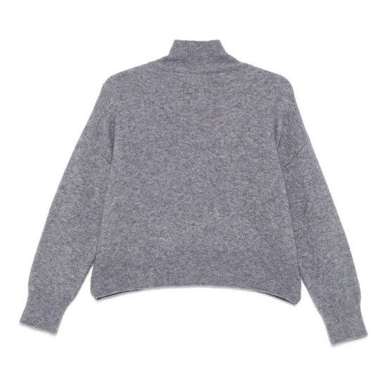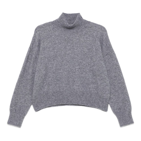 Grey high neck long sleeves ribbed cuffs ribbed hem cashmere and silk jumper