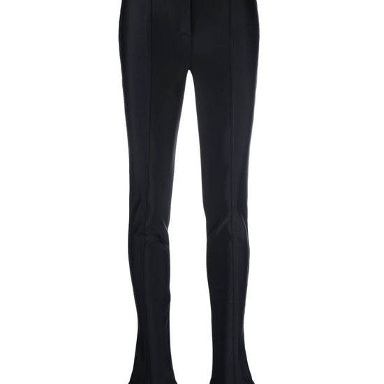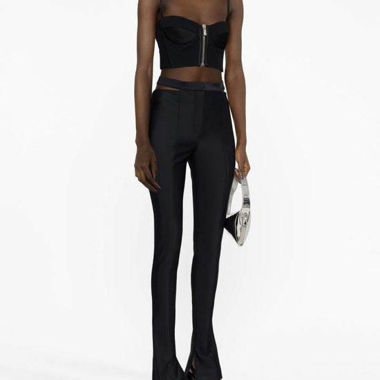 Cut-out detail trousers from mugler featuring black, stretch-design, cut-out detailing, pressed crease, split cuffs and concealed front fastening. flared stretch trousers size and fit - this piece fits true to size. we recommend you get your regular size. model is 1,75m / 5ft 8in wearing size 36 (fr)