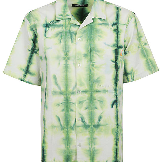 Tie-dye short-sleeve shirt from nahmias featuring blue/white, stretch-cotton, tie-dye print, straight-point collar, front button fastening, short sleeves, chest patch pocket and straight hem. tie-dye print cotton shirt size and fit - this piece fits true to size. we recommend you get your regular size. model is 1,84m / 6ft 1in wearing size m