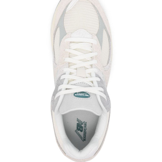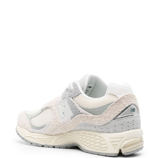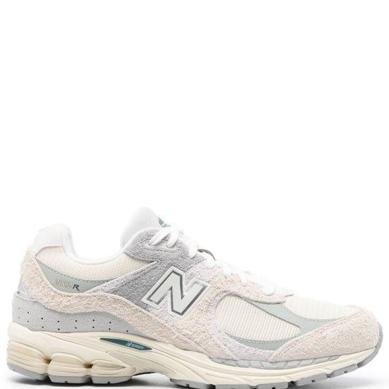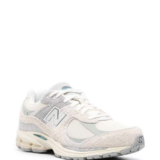 Ivory white/light grey/ecru calf suede mesh panelling round toe logo patch to the side logo plaque at the tongue branded heel counter padded ankle branded insole jersey lining chunky rubber sole front lace-up fastening 2002r sneakers size and fit - heel: 4.0 centimetres.