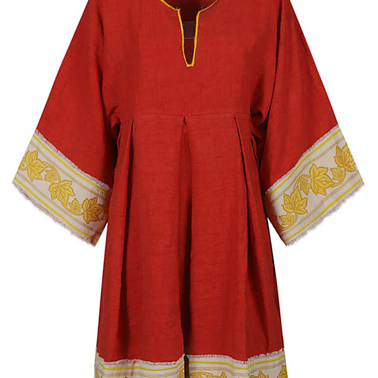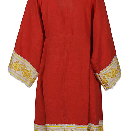 Maniche ampie, scollo a v, con ricami linen short dress size and fit - this piece fits true to size. we recommend you get your regular size. model is 1,75m / 5ft 8in wearing size s