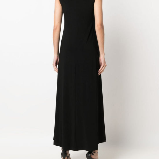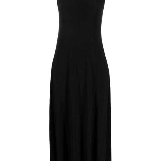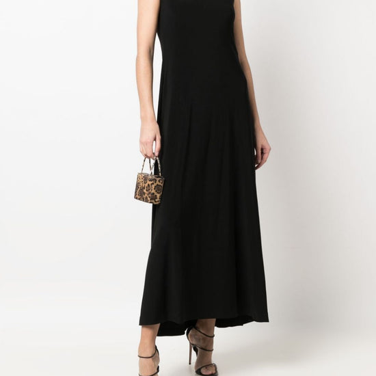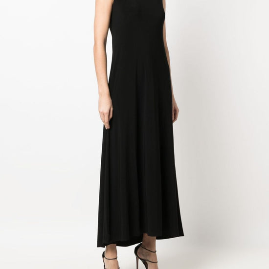 Black velvet effect sleeveless round neck flared design ankle-length sleeveless long dress