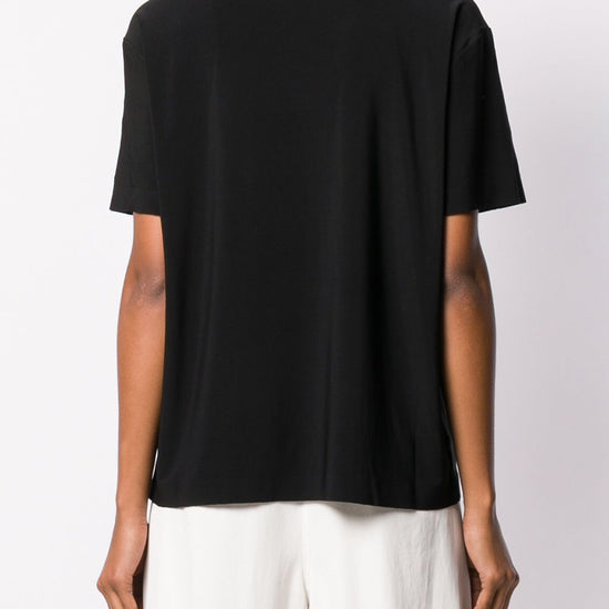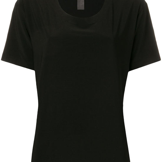 Black straight hem scoop neck short sleeves no pockets short sleeves t-shirt