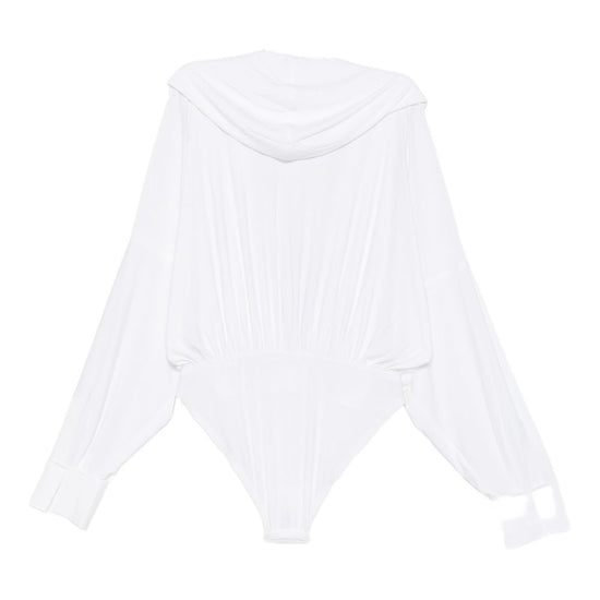 just a reminder that this piece must be tried on over your own garments. oversized hooded bodysuit