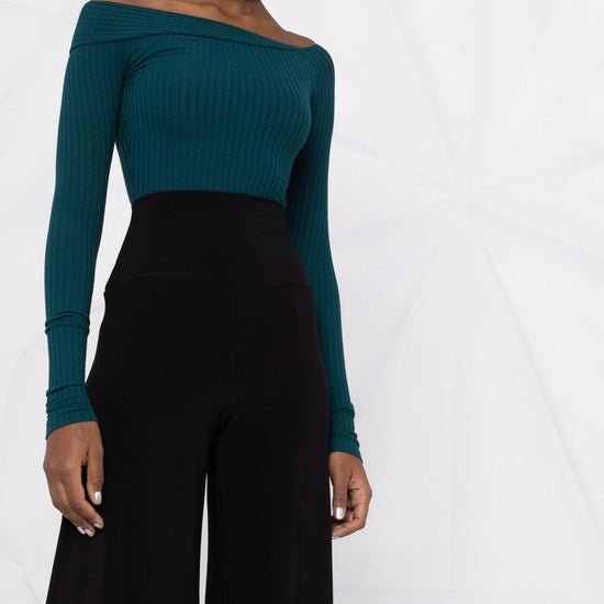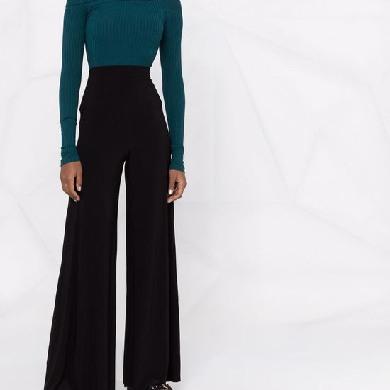 Black high-waisted two side slit pockets flared regular length elephant trousers
