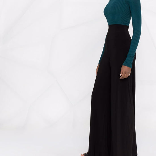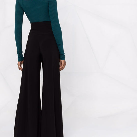 Black high-waisted two side slit pockets flared regular length  elephant jersey trousers