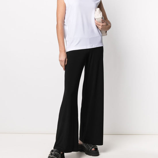 Black stretch design mid-rise wide leg ankle-length  jersey trousers