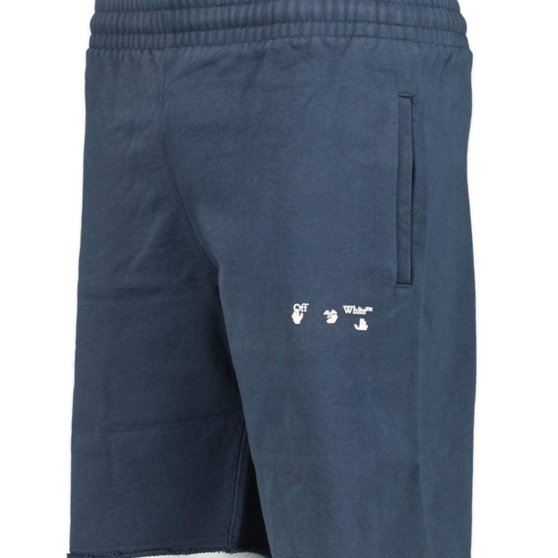 upgrade your casual wardrobe with our off-white cotton sweat shorts in navy. made from premium quality cotton and designed with a comfortable, relaxed fit, these shorts are perfect for lounging at home or hitting the streets in style. featuring the iconic off-white logo in contrasting white, these shorts are a versatile addition to any wardrobe. pair them with your favourite sneakers and a t-shirt for a laid-back look that's sure to turn heads. shop now and elevate your streetwear game with these must-have shorts!