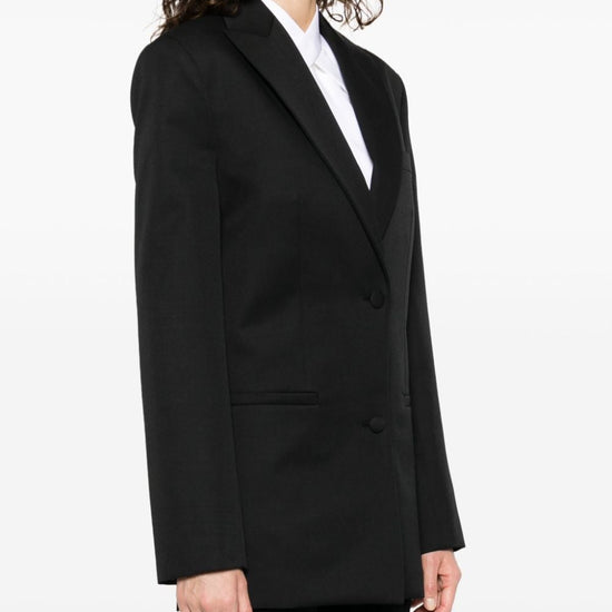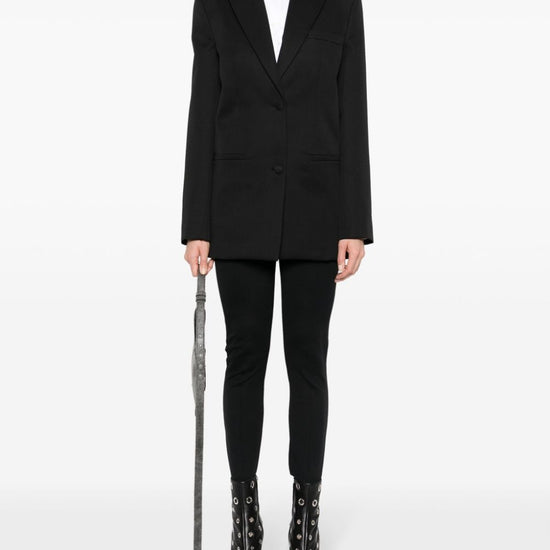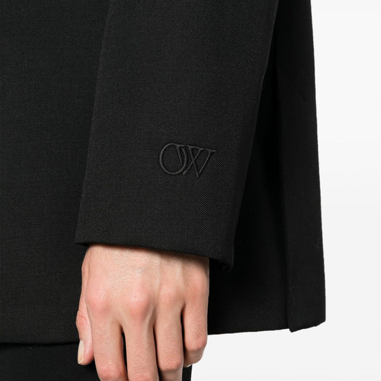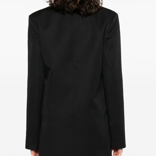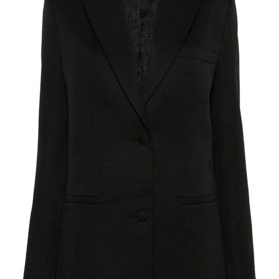 Black virgin wool embroidered motif at the cuff peak lapels long sleeves front button fastening chest welt pocket two side welt pockets logo-jacquard lining wool jacket size and fit - this piece fits true to size. we recommend you get your regular size. model is 1,75m / 5ft 8in wearing size 40 (it)