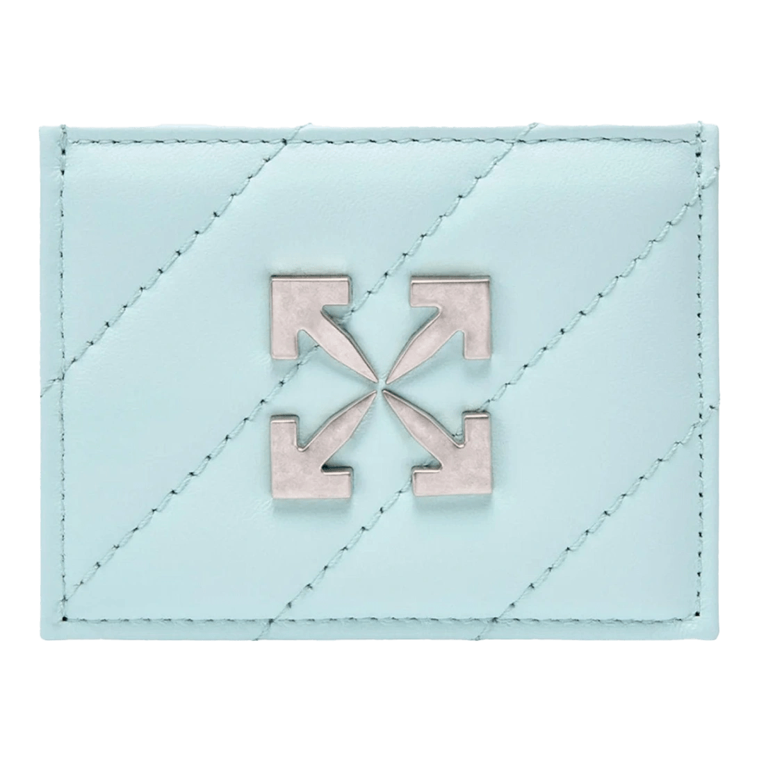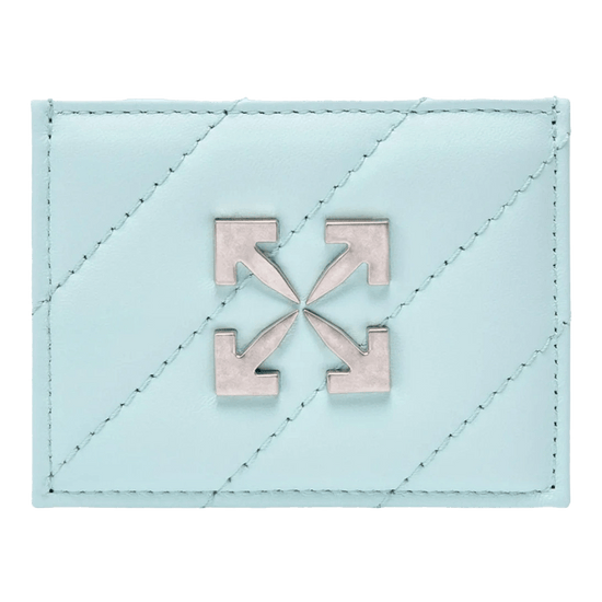 elevate your everyday carry with the off-white jackhammer card holder in light blue. crafted from premium leather, this sleek accessory features the iconic arrow emblem on a quilted front panel, blending minimalist style with bold branding. designed for both functionality and luxury, it offers a refined way to keep your essentials organised in compact form.
