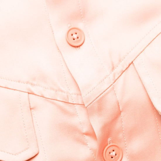 Twist-detail shirt dress from off-white featuring salmon pink, classic collar, front button fastening, twist detailing, long sleeves, straight hem, satin finish and thigh length. shirt dress size and fit - this piece fits true to size. we recommend you get your regular size. model is 1,75m / 5ft 8in wearing size 40 (it)