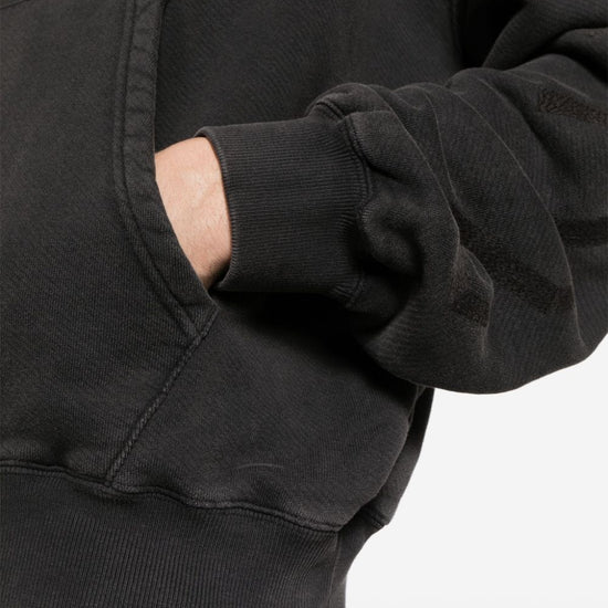 Black cotton jersey texture logo stamp to the front logo stamp to the front drawstring hood drop shoulder long sleeves ribbed cuffs and hem front pouch pocket straight hem french terry lining logo cotton hoodie size and fit - this piece fits true to size. we recommend you get your regular size. model is 1,84m / 6ft 1in wearing size m