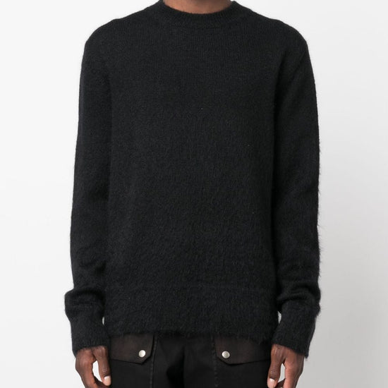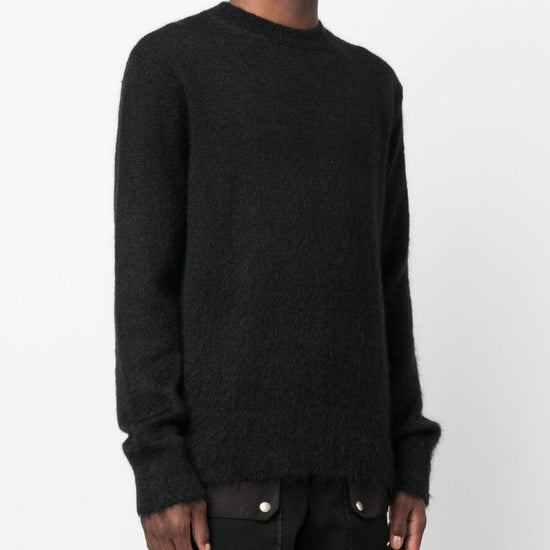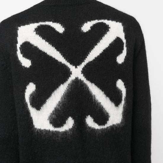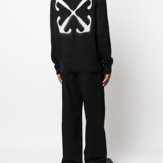 Arrow intarsia crew-neck jumper from off-white featuring black/white, mohair-wool blend, ribbed-knit edge, signature arrows motif, crew neck, long sleeves and straight hem. wool blend sweater size and fit - this piece fits true to size. we recommend you get your regular size. model is 1,84m / 6ft 1in wearing size m