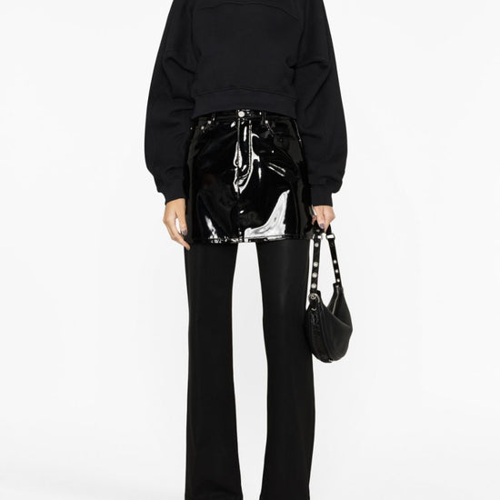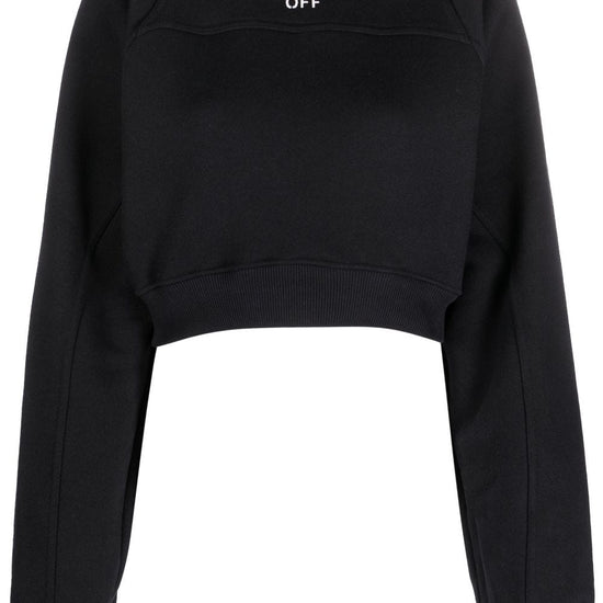 Logo-print cropped cotton sweatshirt from off-white featuring black, cotton, logo print to the front, layered design, cropped, crew neck, long sleeves and ribbed cuffs and hem. logo cropped cotton sweatshirt size and fit - this piece fits true to size. we recommend you get your regular size. model is 1,75m / 5ft 8in wearing size s