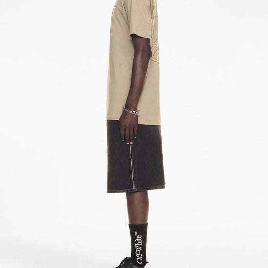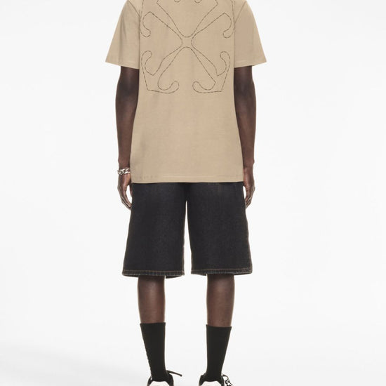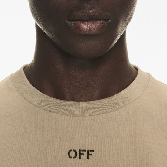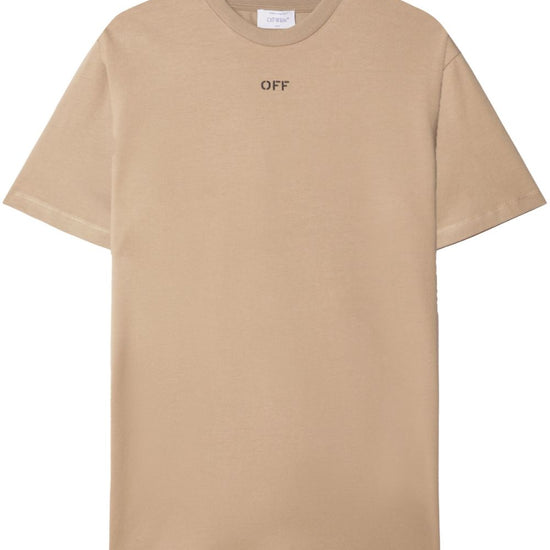 Logo-embroidered cotton t-shirt from off-white featuring sand beige, cotton, embroidered logo at the chest, crew neck, short sleeves and straight hem. logo cotton t-shirt size and fit - this piece fits true to size. we recommend you get your regular size. model is 1,84m / 6ft 1in wearing size m