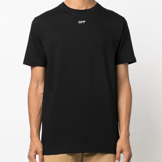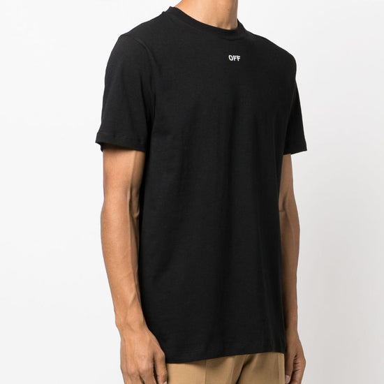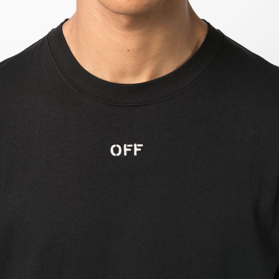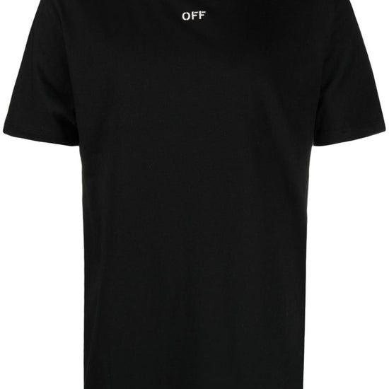 Arrows-embroidered cotton t-shirt from off-white featuring black/white, cotton, logo print to the front, signature arrows motif, embroidered logo to the rear, crew neck and short sleeves. logo cotton t-shirt size and fit - this piece fits true to size. we recommend you get your regular size. model is 1,84m / 6ft 1in wearing size m