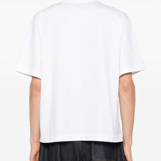 White/black cotton jersey texture logo print to the front crew neck short sleeves short side slits straight hem unlined big bookish cotton t-shirt size and fit - this piece fits true to size. we recommend you get your regular size. model is 1,84m / 6ft 1in wearing size m