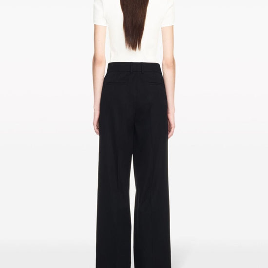 Black wool tailored cut embroidered logo high-waisted belt loops concealed front fastening straight leg formal over wool trousers size and fit - this piece fits true to size. we recommend you get your regular size. model is 1,75m / 5ft 8in wearing size 40 (it)