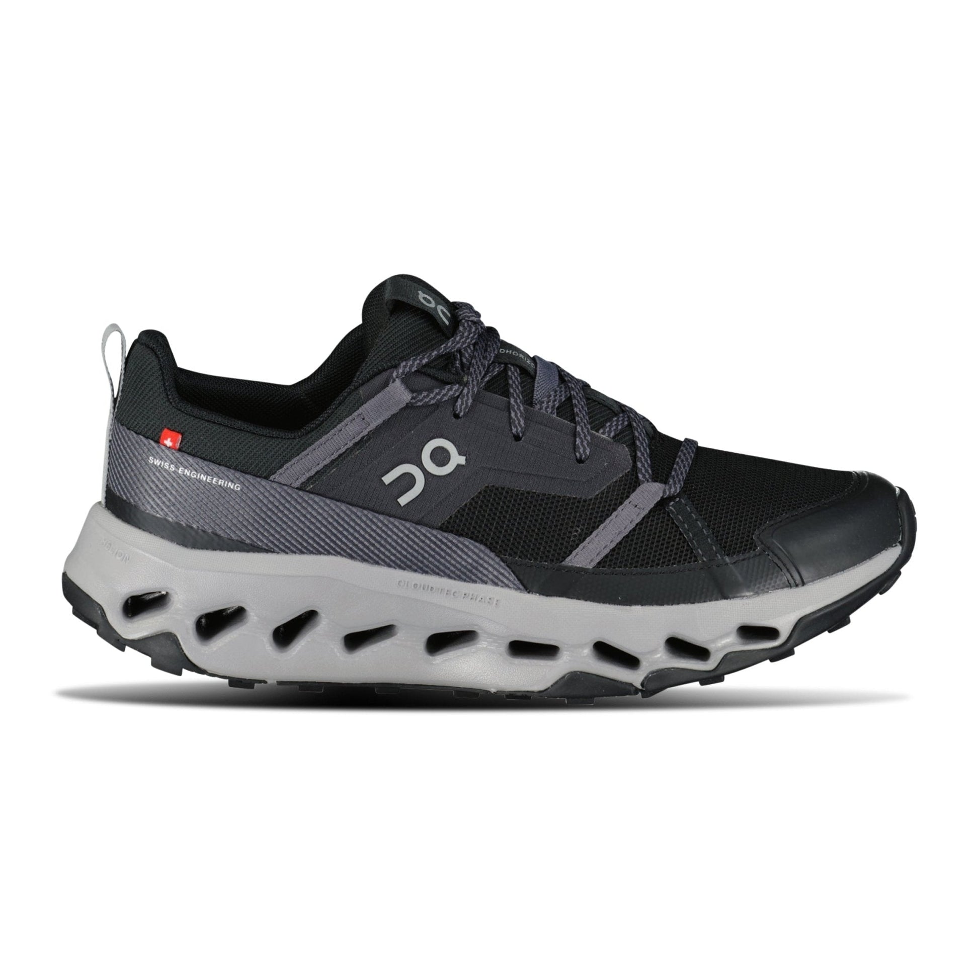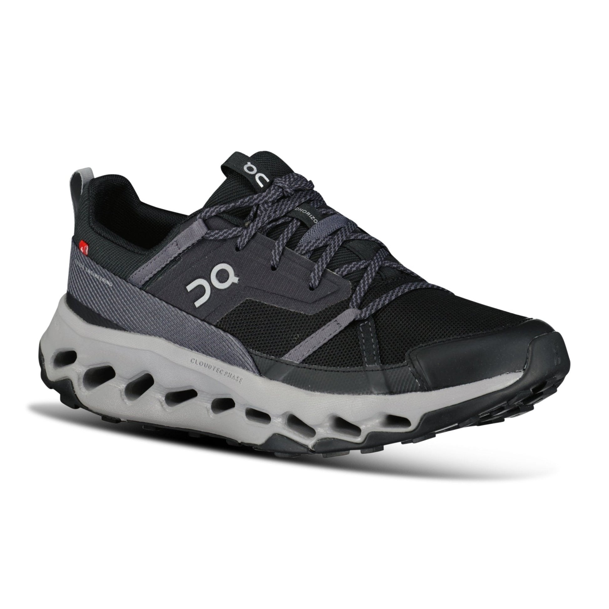 elevate your outdoor performance with the on running cloud horizon trainers in black alloy. engineered for hiking and built to handle mixed terrain, these trainers combine cutting-edge comfort with reliable durability. the cloudtec phase® technology ensures smooth transitions and cushioned landings, while the missiongrip™ outsole delivers exceptional grip on both wet and dry surfaces. lightweight and breathable, the upper is crafted from 100% recycled materials, making this a sustainable yet high-performance choice for your next adventure.