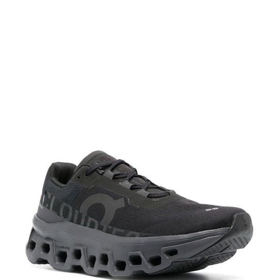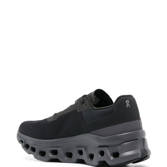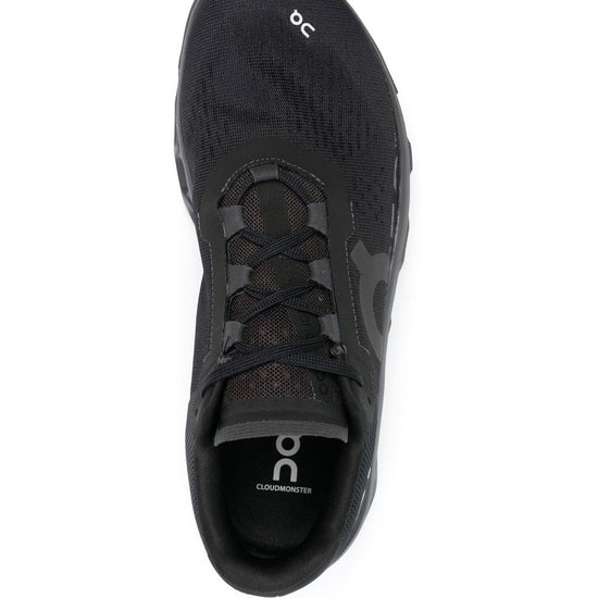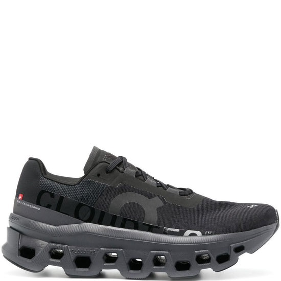 Black recycled polyester panelled design recycled polyester logo print to the side round toe front lace-up fastening chunky rubber sole cloudmonster sneakers