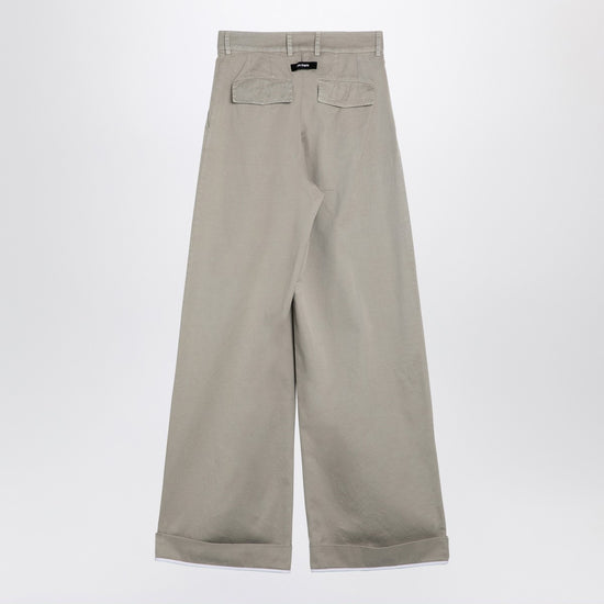 Beige cotton wide leg trousers from palm angels featuring a front zip and hook fastening, belt loops, two side welt pockets, two back flap pockets and logo patch on the back. size and fit - model wears size 40 it model measurements: height: 179 cm chest: 82 cm waist: 65 cm hips: 90 cm