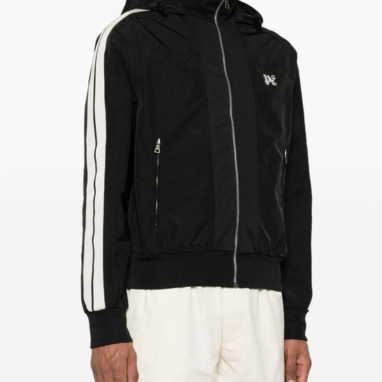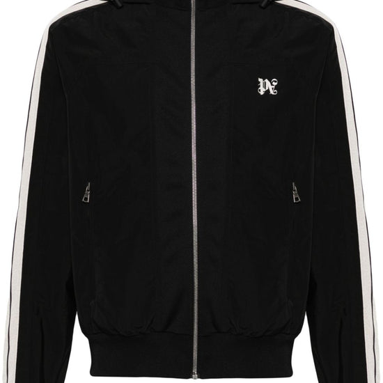 Black, ecru shell toggle hood internal high neck embroidered pa monogram at the chest long raglan sleeves with knitted stripes ribbed cuffs two front zip fastening pockets ribbed hem full lining branded zip puller gunmetal-tone hardware authenticity qr code front zip fastening monogram track jacket size and fit - this piece fits true to size. we recommend you get your regular size. model is 1,84m / 6ft 1in wearing size m
