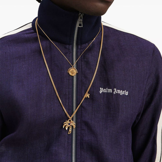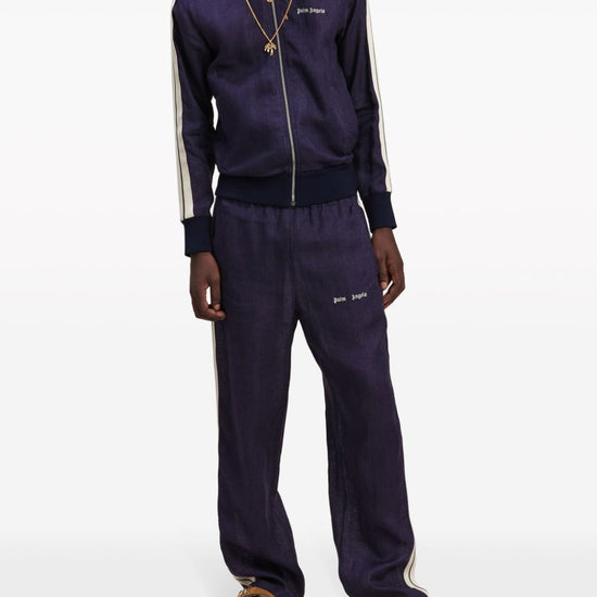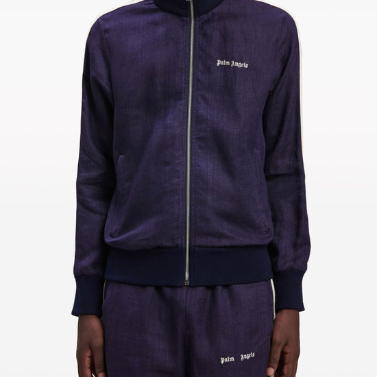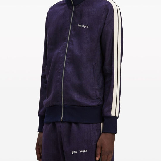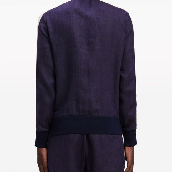 Navy blue/off-white linen embroidered logo at the chest side stripe detailing high neck long sleeves front zip fastening slip pockets to the sides logo track jacket size and fit - this piece fits true to size. we recommend you get your regular size. model is 1,84m / 6ft 1in wearing size m