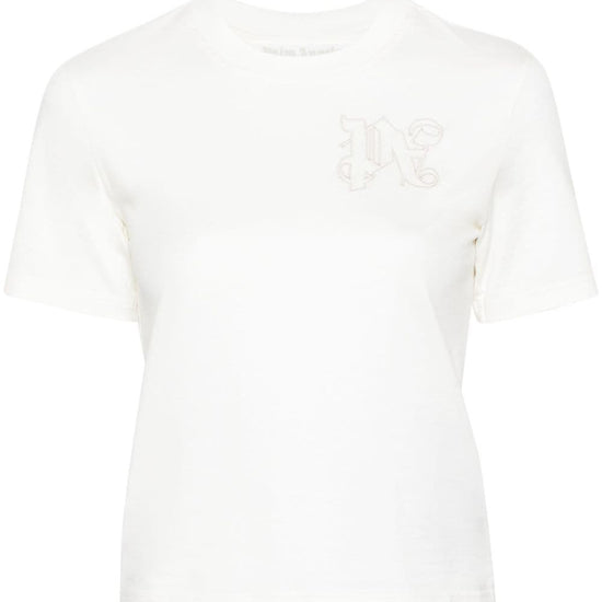 White cotton embroidered logo at the chest crew neck short sleeves straight hem logo cotton t-shirt size and fit - this piece fits true to size. we recommend you get your regular size. model is 1,75m / 5ft 8in wearing size s