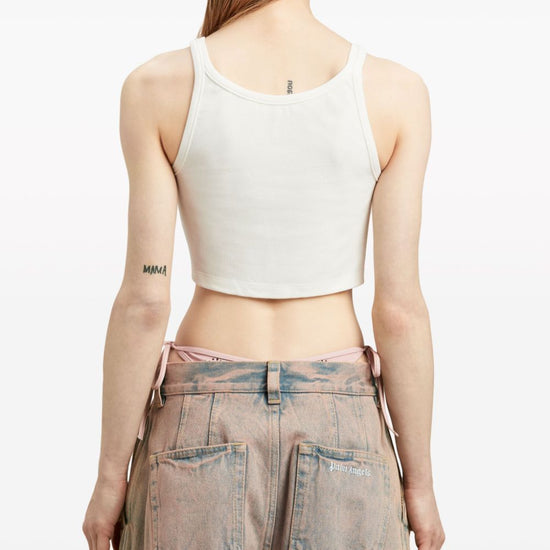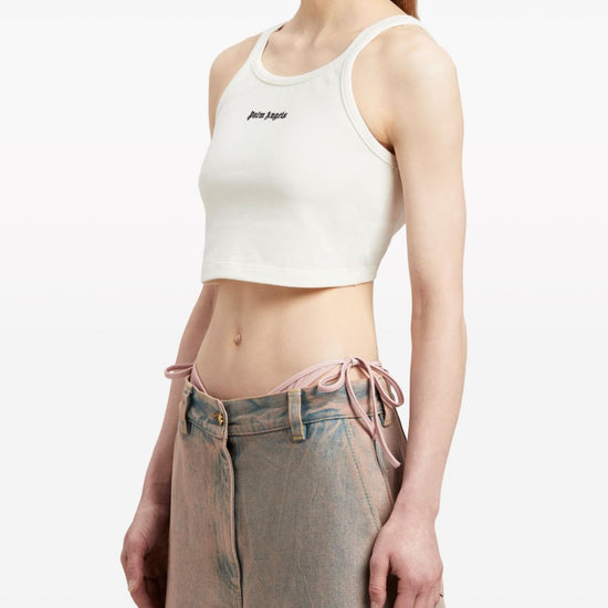 Off-white/black cotton logo print to the front sleeveless scoop back cropped classic logo tank top size and fit - this piece fits true to size. we recommend you get your regular size. model is 1,75m / 5ft 8in wearing size s