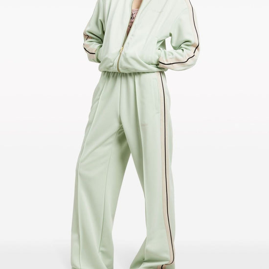 Mint green/off-white cotton side stripe detailing embroidered logo to the front elasticated waistband wide leg raised seam detail floor-length classic logo track loose classic logo track loose pants size and fit - this piece fits true to size. we recommend you get your regular size. model is 1,75m / 5ft 8in wearing size s