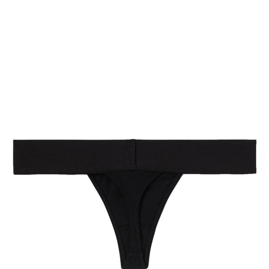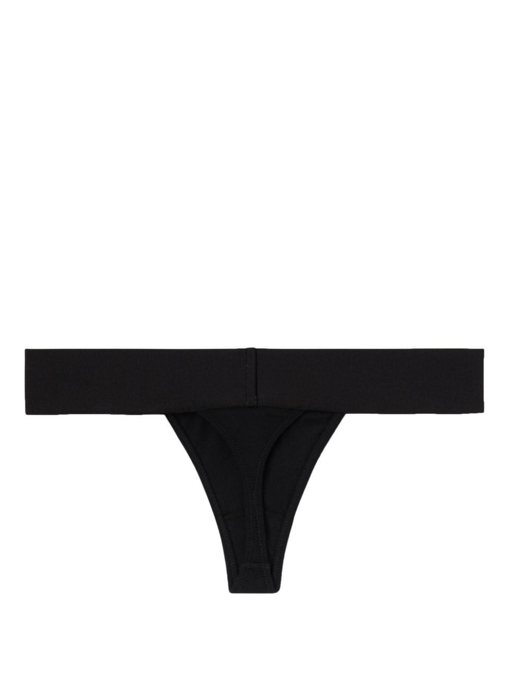 Jet black stretch-cotton thong style logo waistband just a reminder that this piece must be tried on over your own garments. classic logo logo cotton thong brief