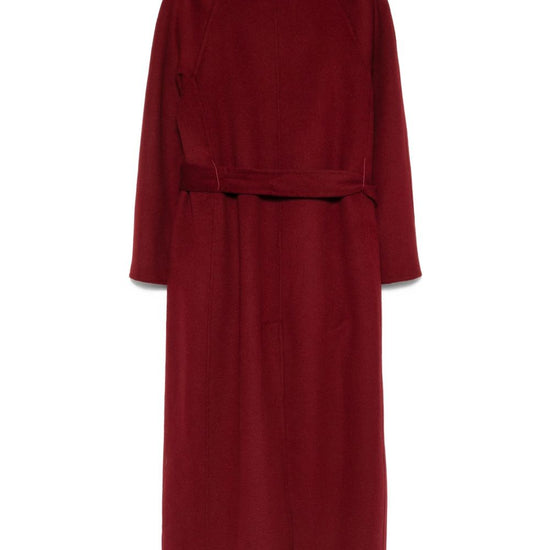 Red self-tie belt long sleeves notched lapel wool double-breasted coat