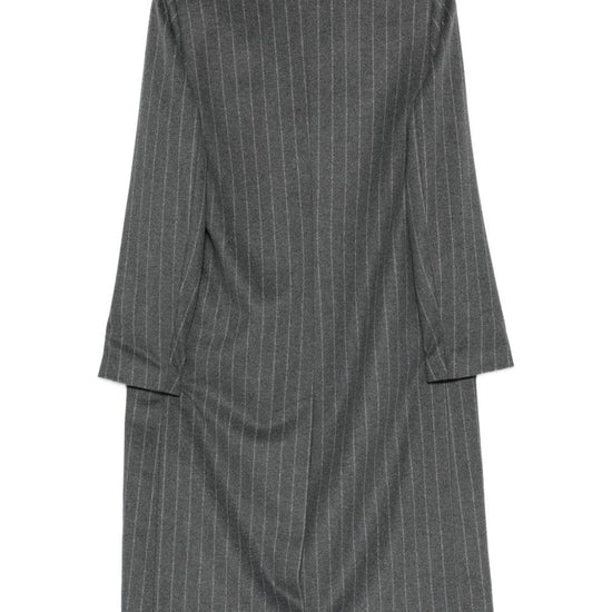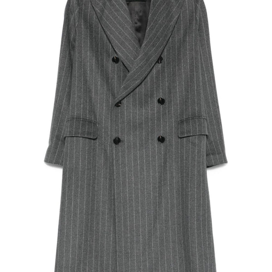 Grey pinstripe pattern double-breasted fastening long sleeves peak lapel wool double-breasted coat