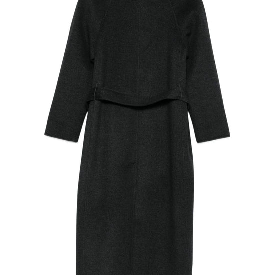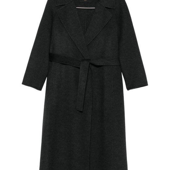 Grey wool self-tie belt notched lapel long sleeves straight hem paola wool coat