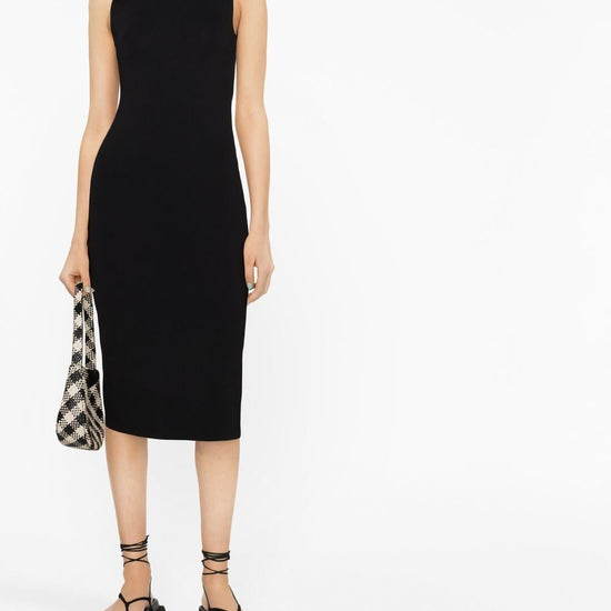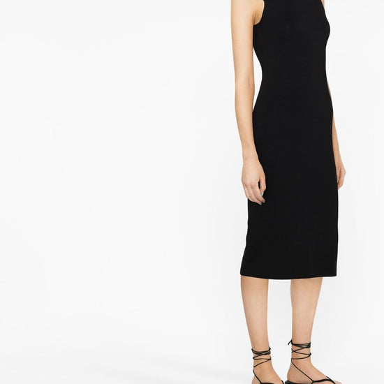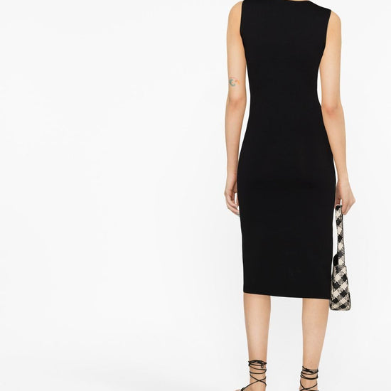 Knitted midi dress from p.a.r.o.s.h. featuring black, knitted construction, stretch-design, round neck and sleeveless. knitted midi dress size and fit - this piece fits true to size. we recommend you get your regular size. model is 1,75m / 5ft 8in wearing size s