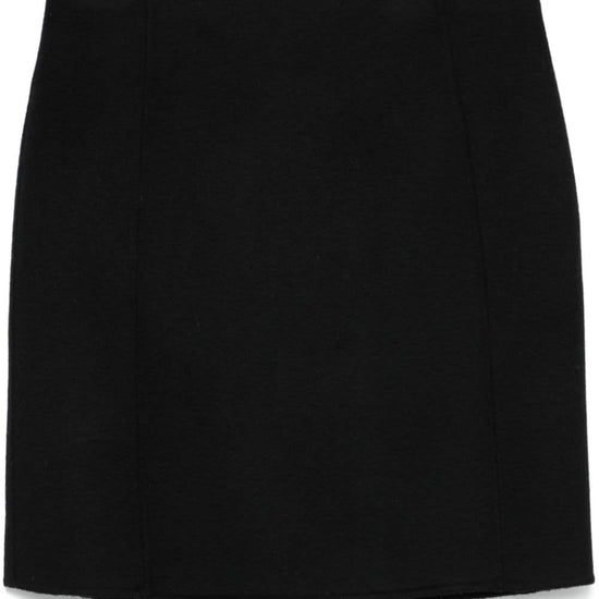 Black wool brushed effect concealed side zip fastening dart detailing central rear vent unlined straight hem wool mini skirt size and fit - this piece fits true to size. we recommend you get your regular size. model is 1,75m / 5ft 8in wearing size s