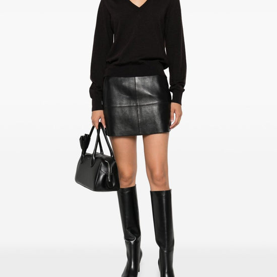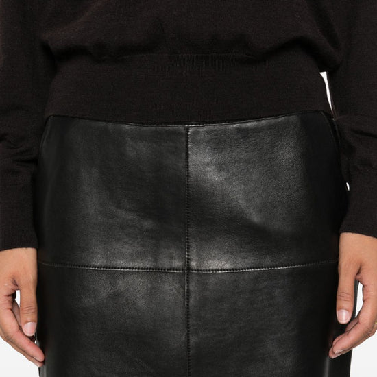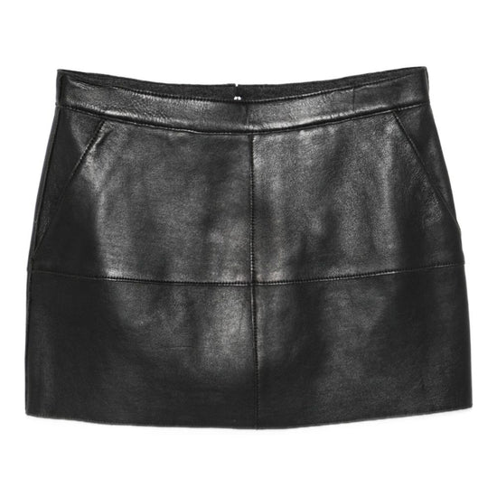 Black panelled design high waist concealed zip fastening leather mini skirt