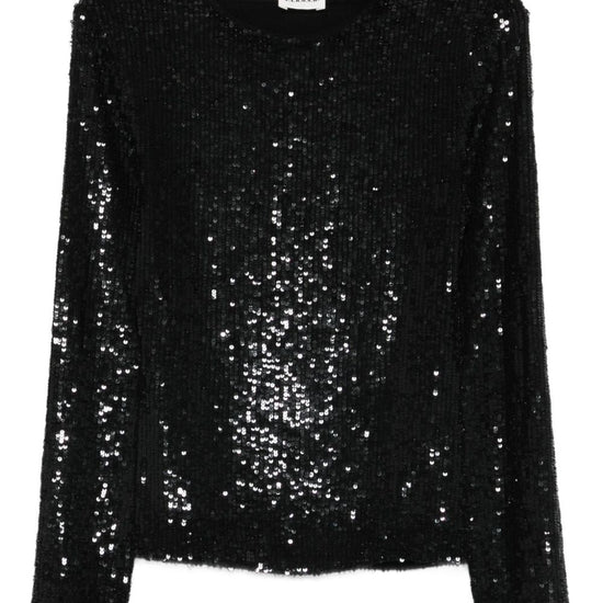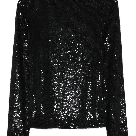Black sequin embellishment long sleeves round neck straight hem sequined top