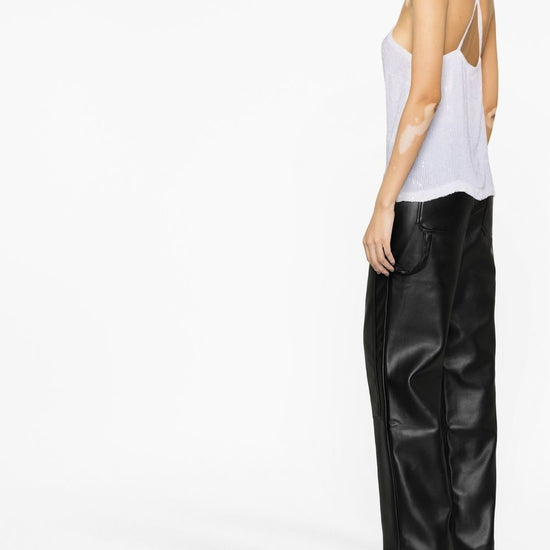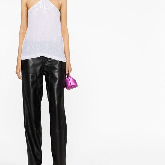 Sequin halterneck top from p.a.r.o.s.h. featuring white, sequin design, halterneck, rear criss-cross straps, sleeveless, side slits and curved hem. sequinned top size and fit - this piece fits true to size. we recommend you get your regular size. model is 1,75m / 5ft 8in wearing size s