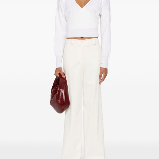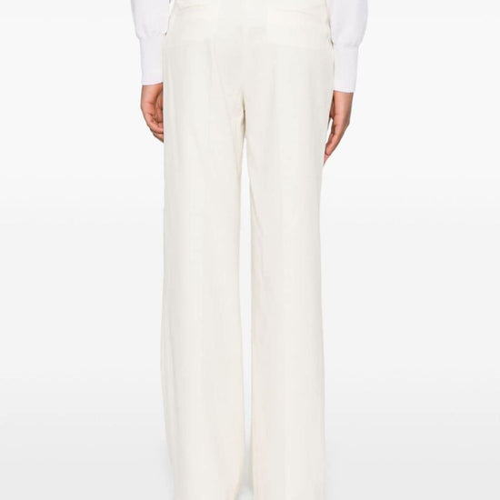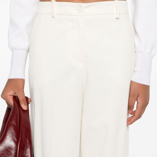 White cotton blend textured finish front button and zip fastening belt loops two side slash pockets pressed crease two rear welt pockets tapered leg crew cotton blend trousers size and fit - this piece fits true to size. we recommend you get your regular size. model is 1,75m / 5ft 8in wearing size s